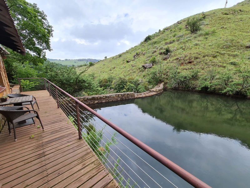 The cottage accommodates up to 10 guests in 5 bedrooms. The adjoining living area is comfortable and inviting, featuring an open-plan kitchen, dining room and lounge with 2 fireplaces leading onto a patio with free- standing braai and side deck, overhanging the water. The kitchen is fully equipped with all the modern luxuries one would come to expect for a pleasant stay.